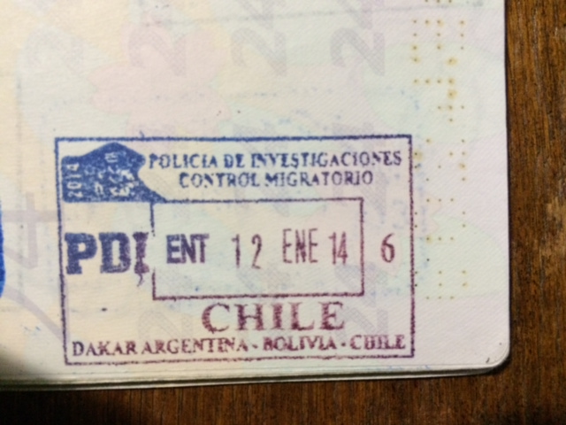 既にパスポートは入国済です。出張イミグレが、ビバークに来るそうでして、JUNのパスポートには、もうチリ入国のスタンプ↑↑↑があります。
